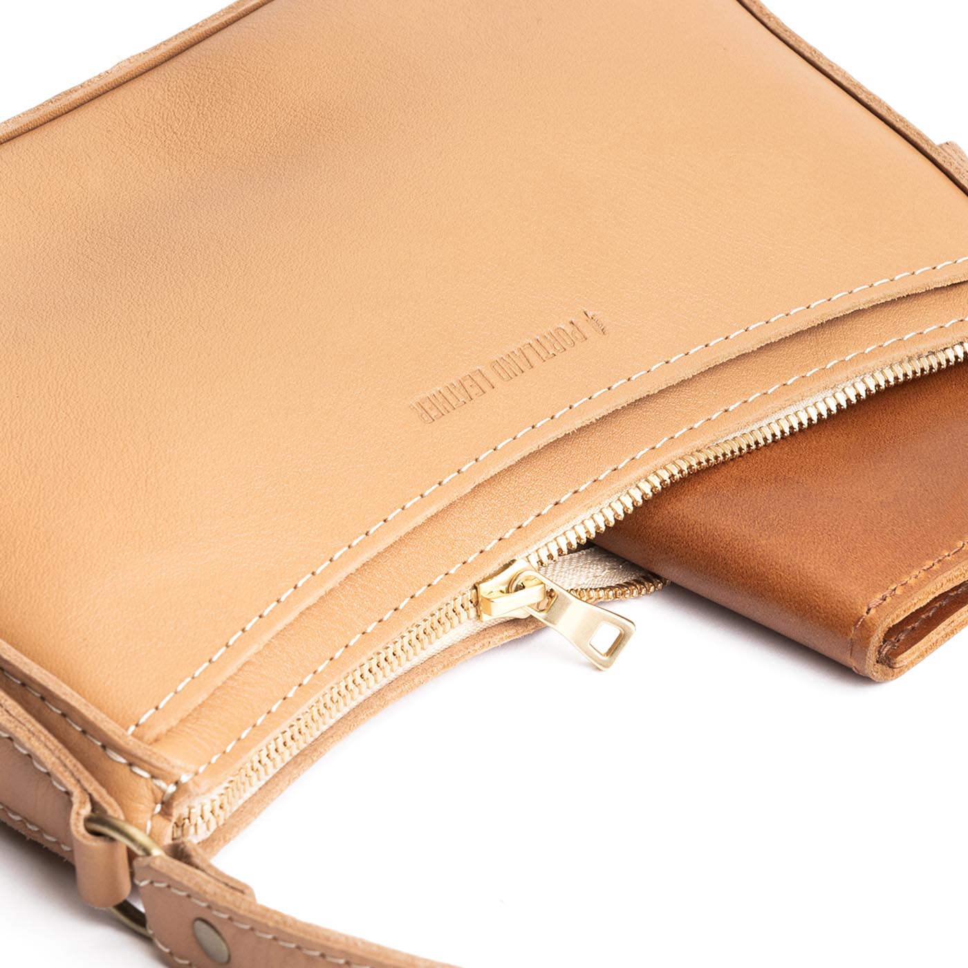 Our durable leather goods are unlined, featuring the natural suede side of the hide. Since fabric-lined bags inevitably discolor and tear with use, we chose to showcase the soft sueded underside of our hides, ensuring that your bag lasts a lifetime.