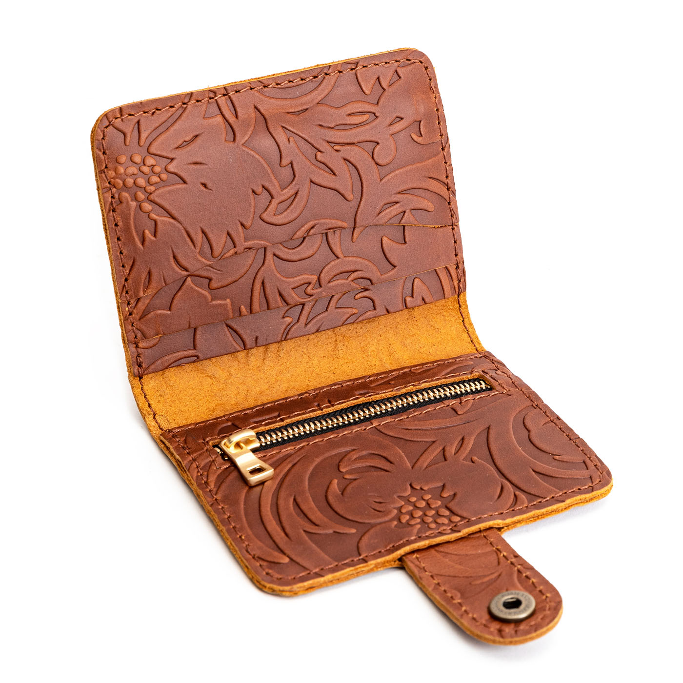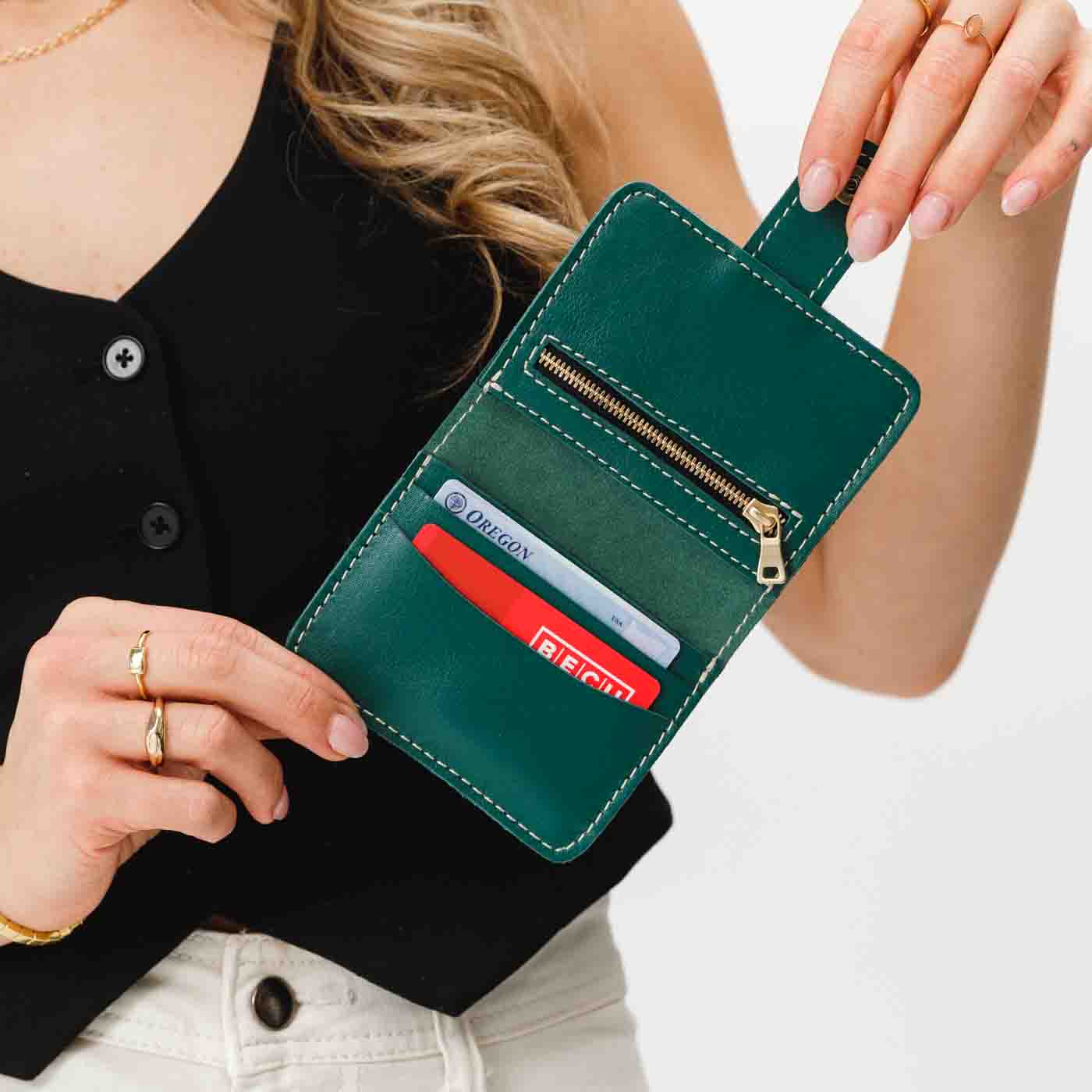 - Features 2 card slots, 2 cash slots, and a zippered coin pocket